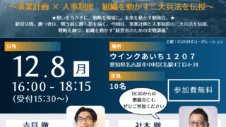 12月8日(月)🏯軍師の兵法勉強会🏯冬の陣⛄『 勝てる経営の布陣を描く~事業計画 × 人事制度 組織を動かす二大兵法を伝授~』を開催いたします。今回は、シクミタス株式会社代表取締役 𠮷貝徹 さんとのコラボセミナーです!𠮷貝さんからは、「事業...